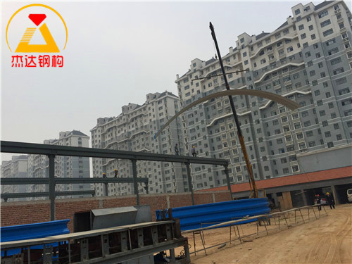 從施工現(xiàn)場(chǎng)照片可以看出,鋼結(jié)構(gòu)的焊接與安裝工藝規(guī)范,連接部分設(shè)計(jì)合理,確保了整體的安全性能。該拱形屋頂?shù)脑O(shè)計(jì)不僅兼顧了結(jié)構(gòu)強(qiáng)度,還考慮了施工的便捷性和經(jīng)濟(jì)性。