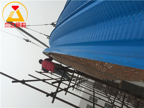 拱形屋頂?shù)拇u混結(jié)構(gòu)山墻施工需要土建施工單位和拱形屋頂施工單位的緊密配合。施工過程中,設(shè)計拱高尺寸由拱形屋頂施工方提供,土建單位據(jù)此預留足夠高度以便后續(xù)安裝,保障整體施工質(zhì)量與進度。