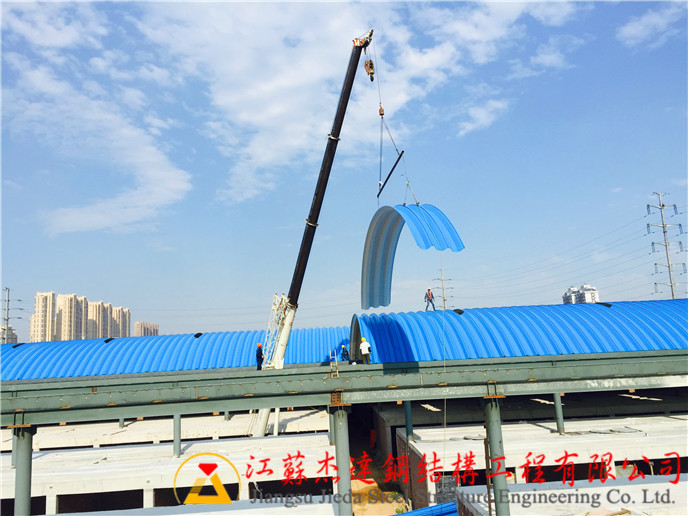 從施工進度來看,整個連跨拱形屋頂的搭建流程科學合理,施工周期得到有效控制。現場施工人員配合緊密,采用機械設備和手工相結合的方式,保證了施工質量和效率。