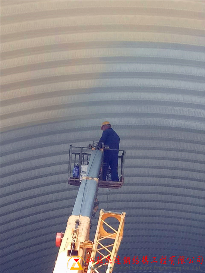 拱形屋頂彩鋼板底面噴涂防腐油漆